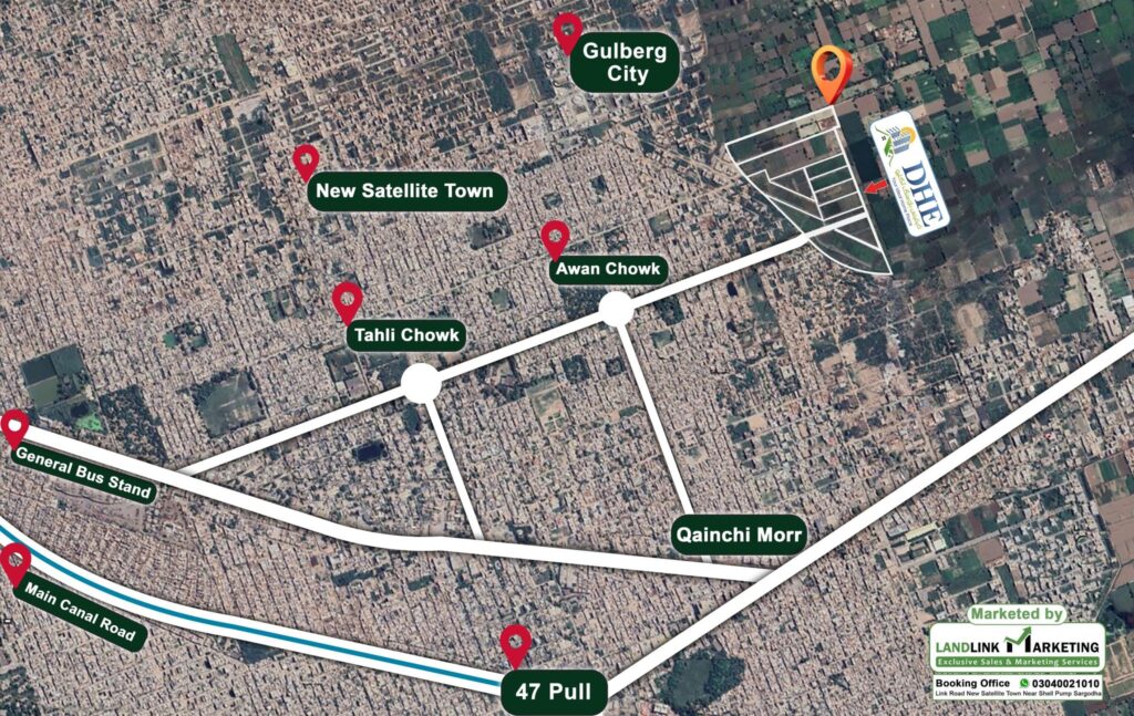 - Centrally located nearest to city new Sattelite Town Sargodha, best restaurants, commercial market, Banks, daily necessities, on walk-in distance from project.